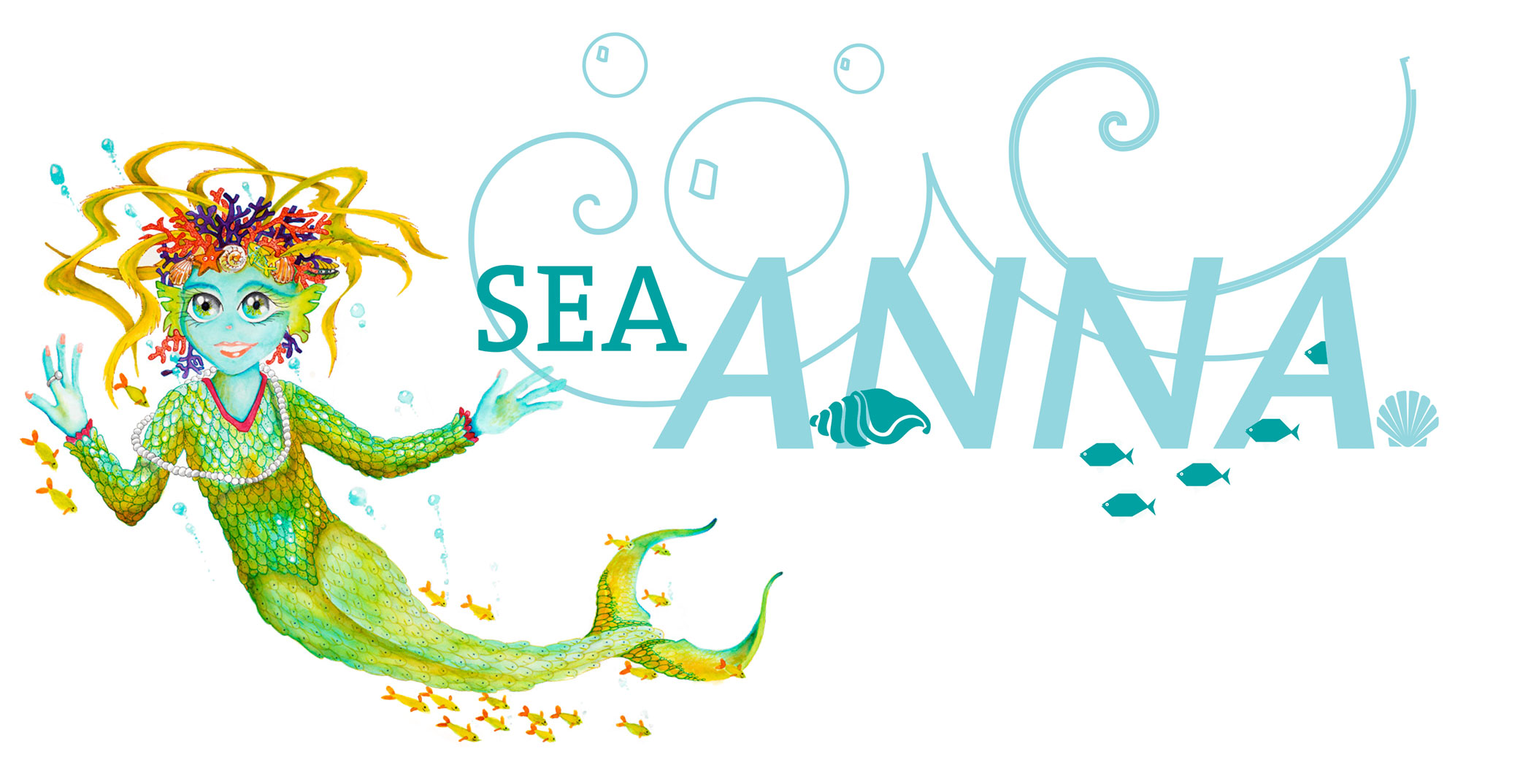 She is passionate and dedicated to the need for plentiful pure water to sustain life, and lives behind a beautiful waterfall that flows into the ocean.   SeaAnna has the ability to blow a bubble around humans so they can stay underwater while she takes them on wondrous adventures.  She can create enormous waves or strong currents to protect the water creatures who come to her.  She navigates by the stars and tides. SeaAnna’s patience, dedication and heart affect everyone she meets.